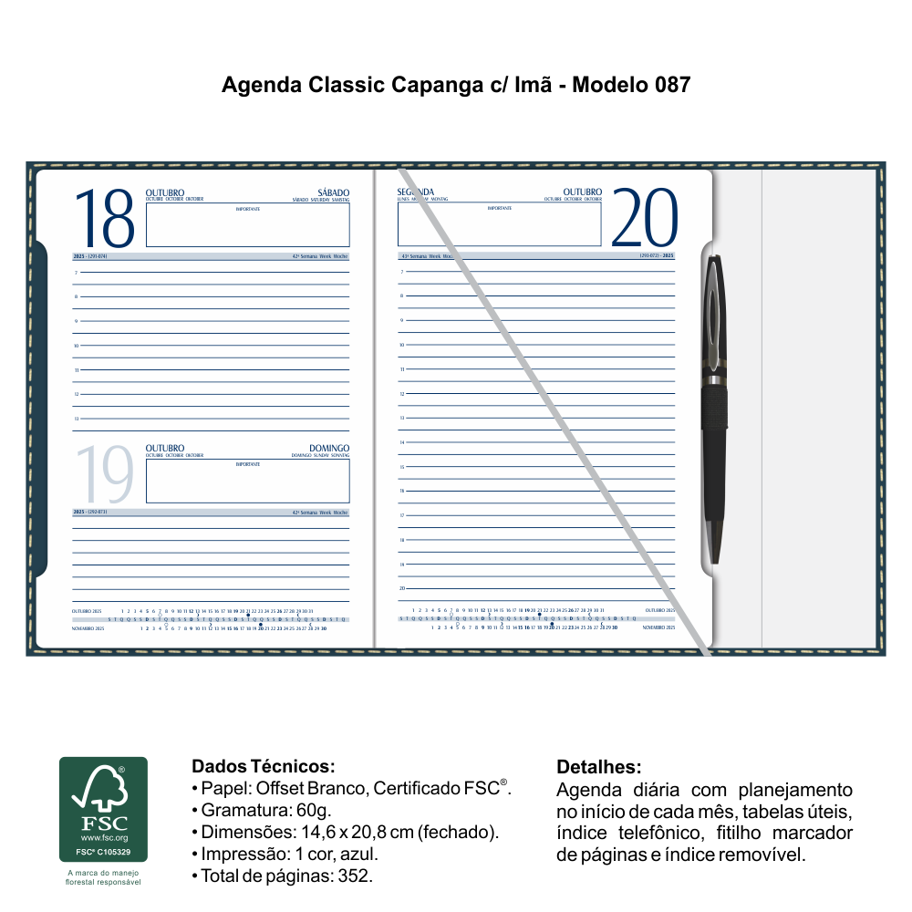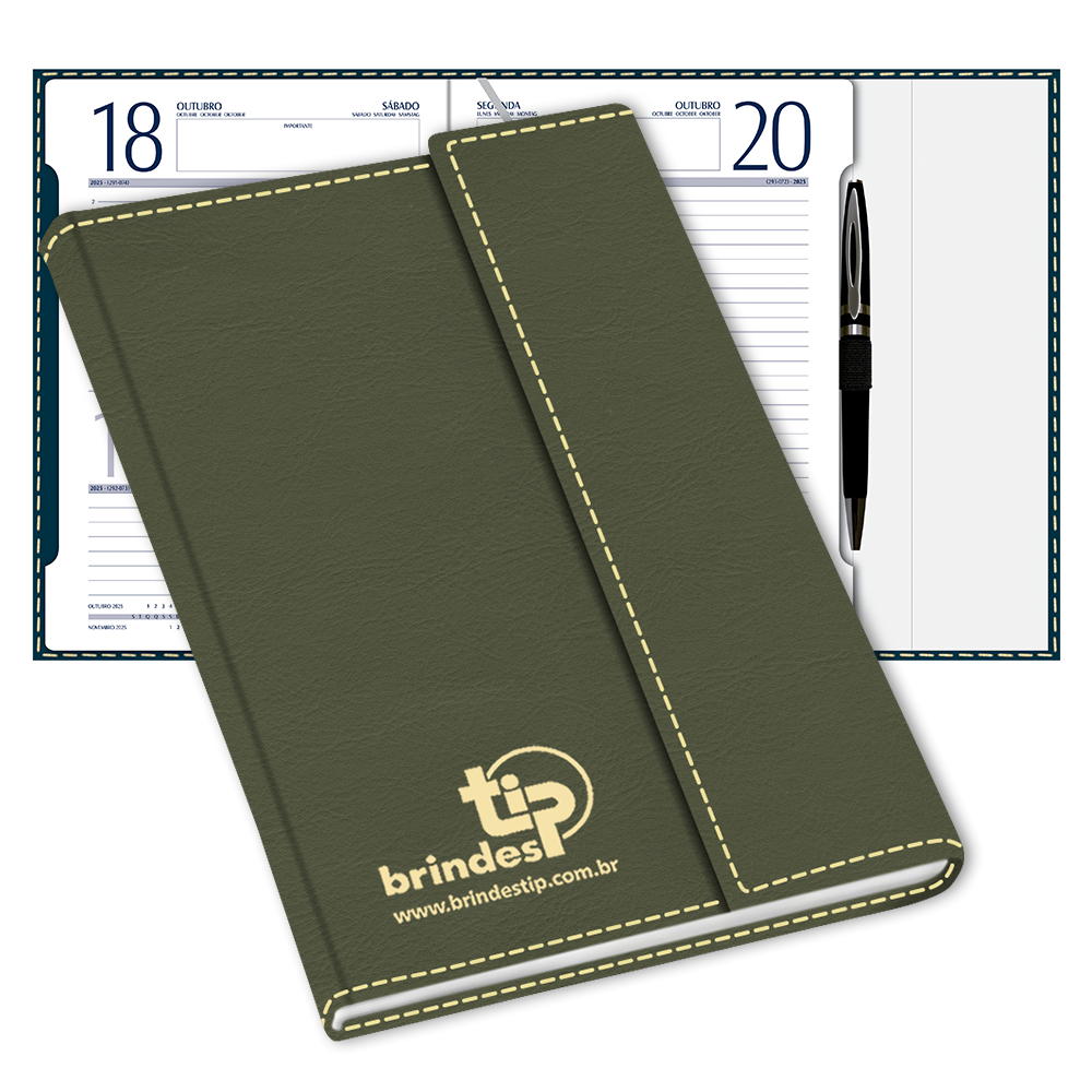 Agenda Prime AD - Andorra. Material sintético, costura artesanal, fitilho marcador de páginas, recorte, suporte para caneta com caneta inclusa e acabamento encadernado com aba magnética.