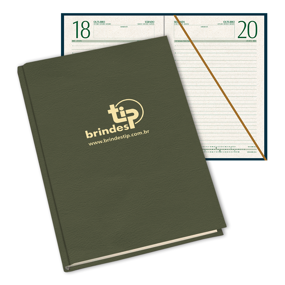 Opcionais: Apliques, cantoneiras, costura artesanal, fecho elástico, suporte para caneta, caneta, caneta personalizada e lupa para leitura.