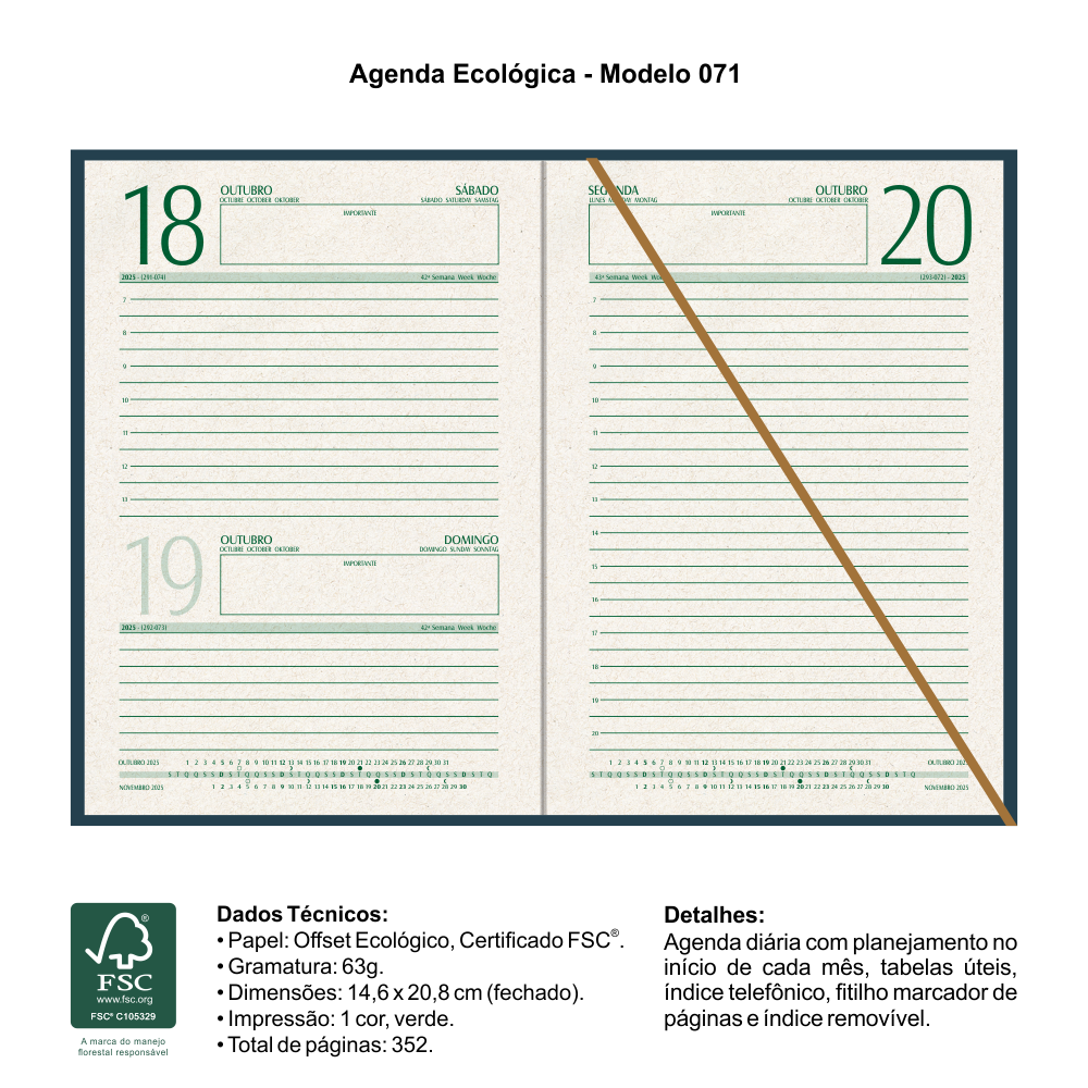 Agenda AD - Andorra. Material sintético, fitilho marcador de páginas e acabamento encadernado.