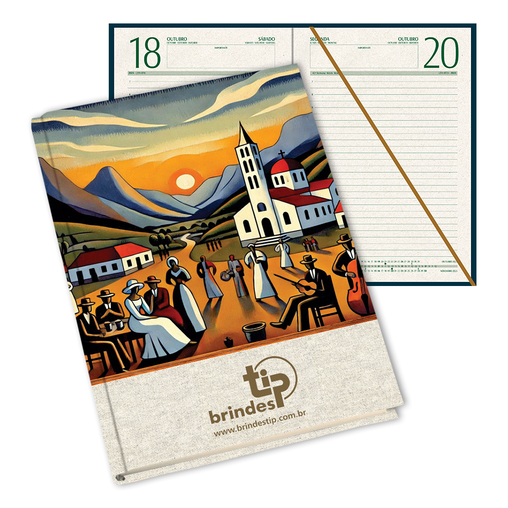 Agenda AN - Arte Nova. Material impresso com arte temática, laminação acetinada, fitilho marcador de páginas e acabamento encadernado.