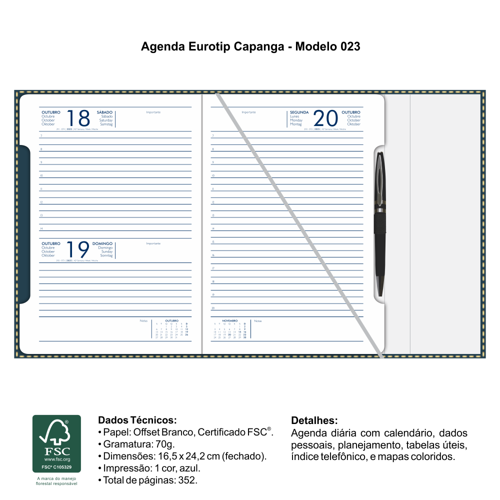 Agenda Eurotip Capanga c/ garra dupla, capa Laminada Impressa