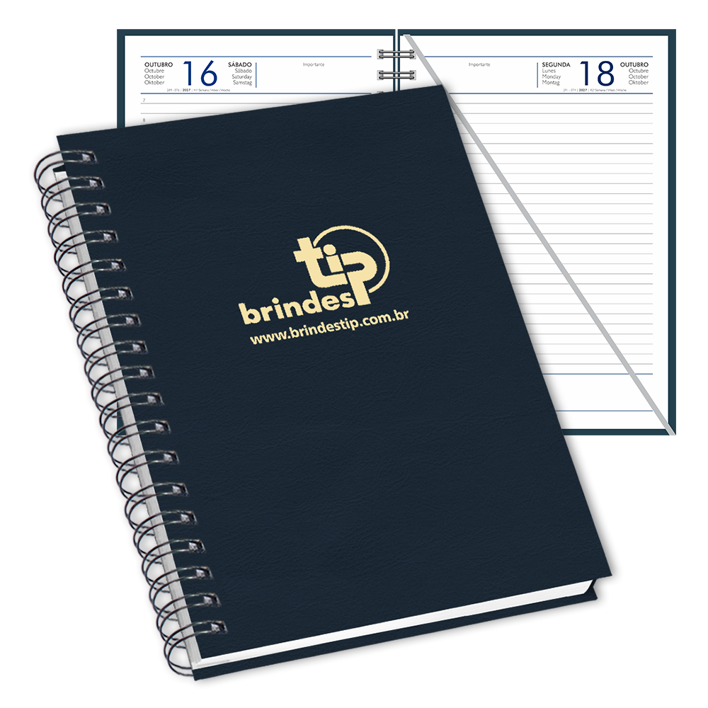 Agenda AD - Andorra. Material sintético, fitilho marcador de páginas e acabamento com garratip.