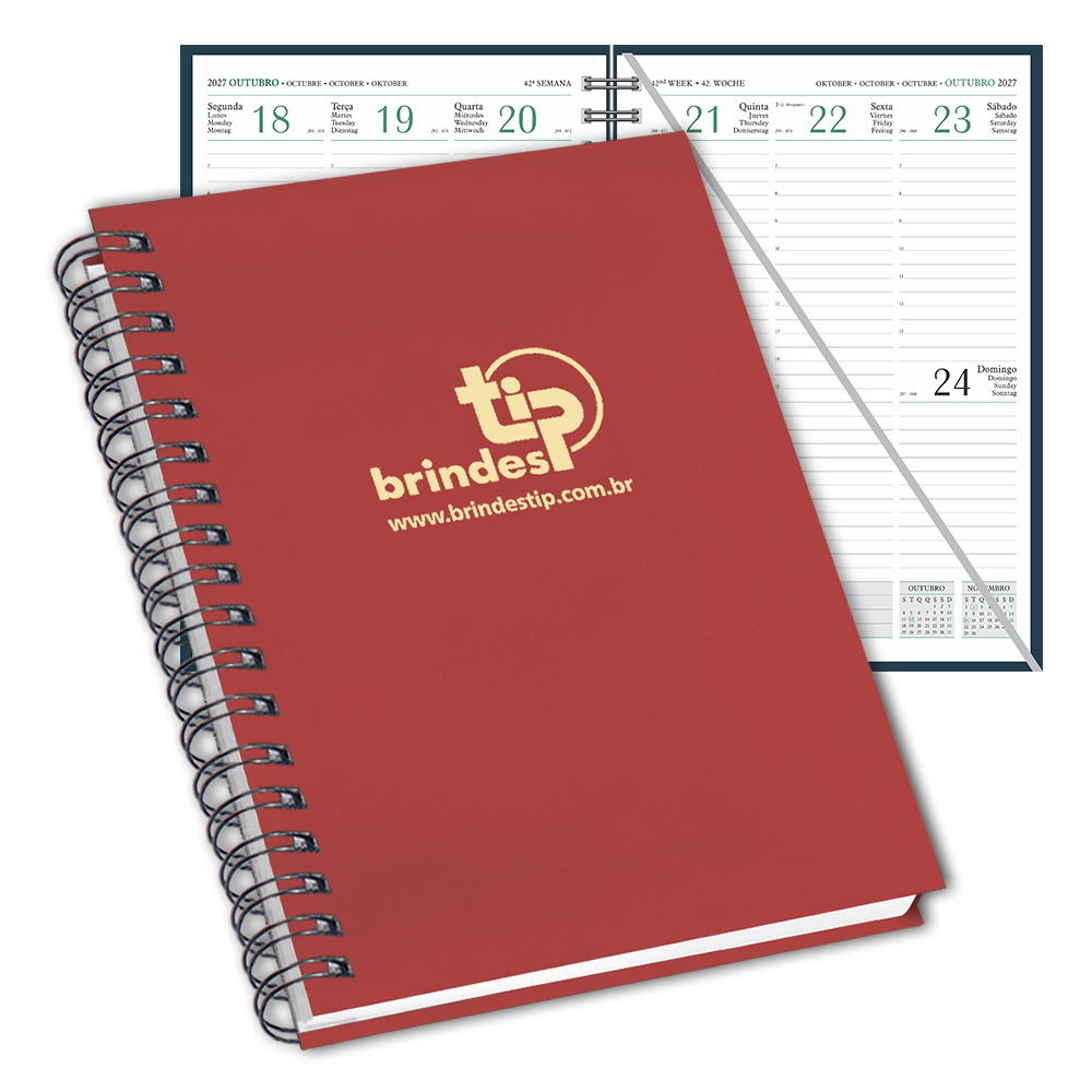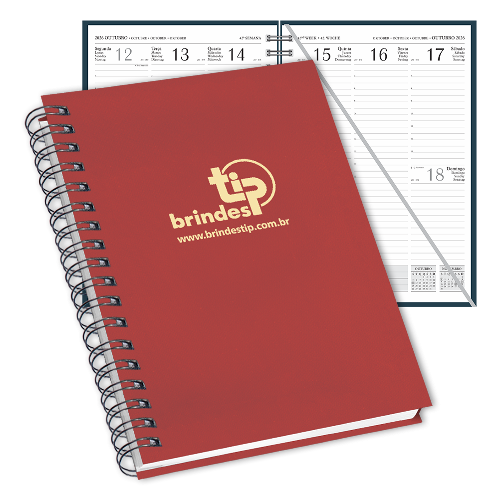 Agenda SV - Sevilha. Material sintético, fitilho marcador de páginas e acabamento com garratip.