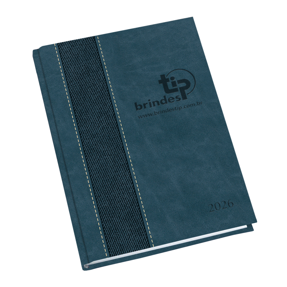 Agenda JL - Jacarta Linha. Material sintético com textura gravado a seco, costura grossa em linha, acabamento encadernado.