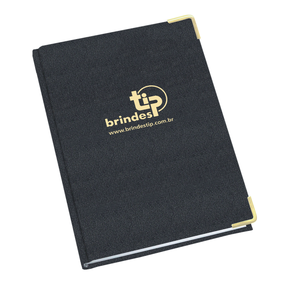 Opcionais: Apliques, cantoneiras, costura artesanal, fecho elástico, fitilho marcador de páginas, suporte para caneta, caneta, caneta personalizada e lupa para leitura.