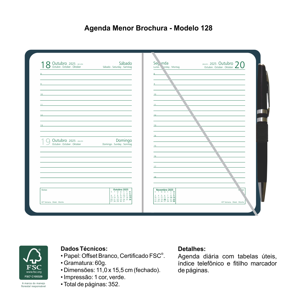 Opcionais: Apliques, cantoneiras, caneta personalizada e lupa para leitura.