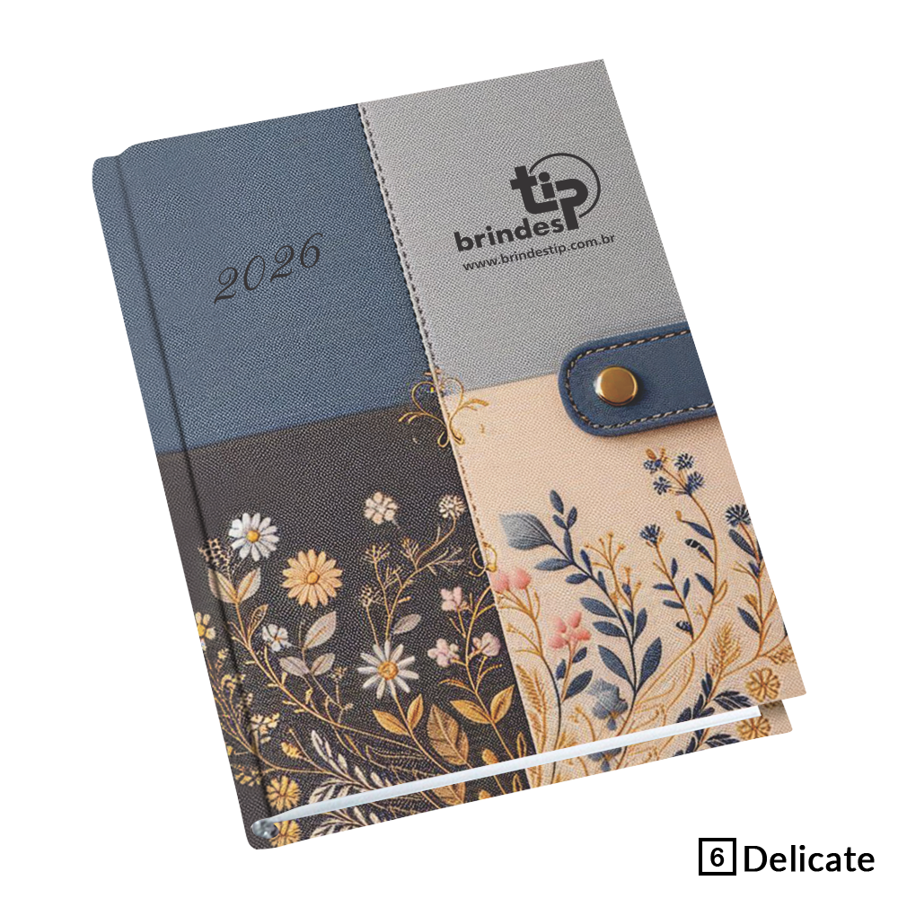 Opcionais: Apliques, cantoneiras, fecho elástico, suporte para caneta, caneta, caneta personalizada e lupa para leitura.