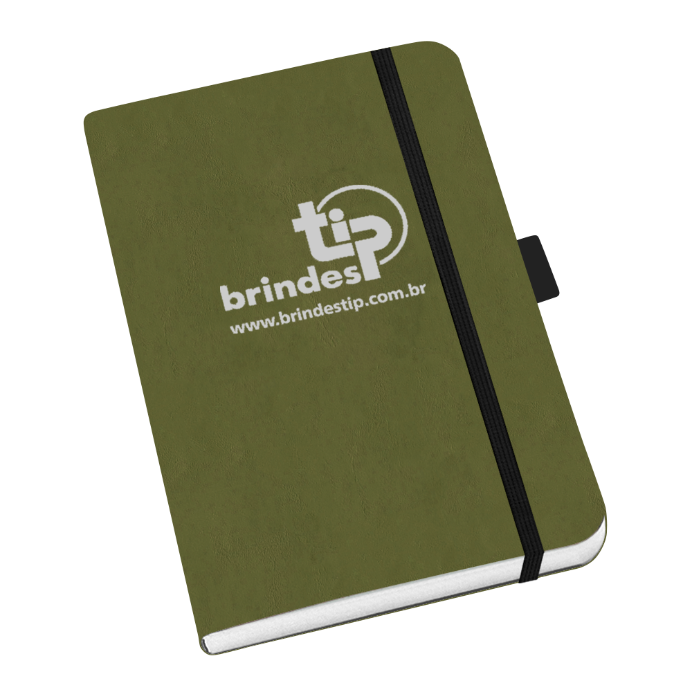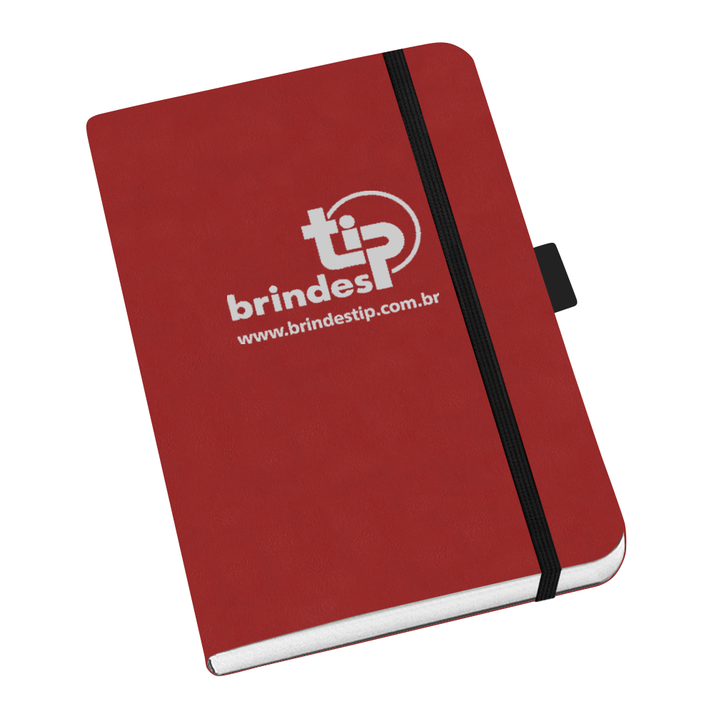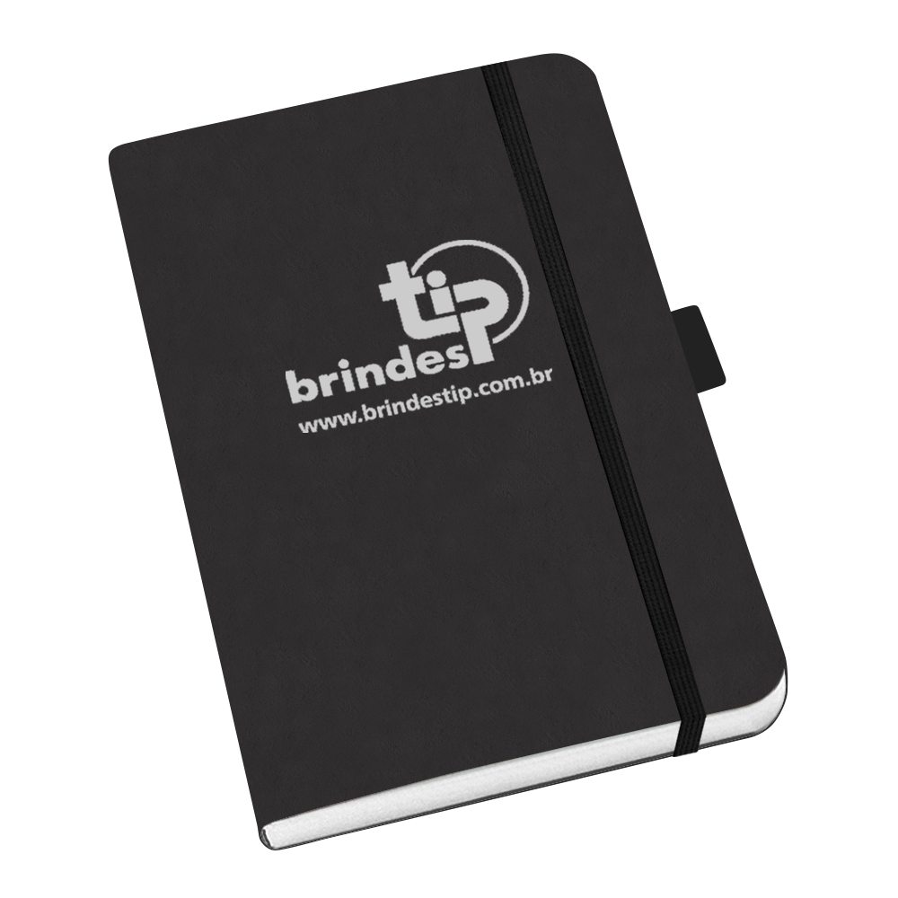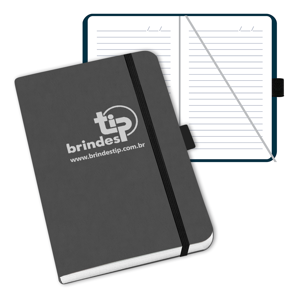 Bloco Tipskine LA - Lagos. Material sintético, acabamento encadernado, suporte para caneta, folhas pautadas e fecho elástico preto.