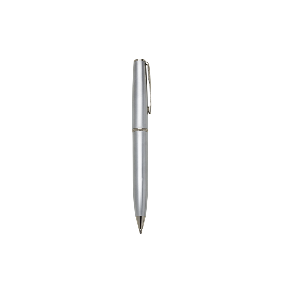 Caneta metal inteira colorida com detalhes prata. Clip metal com “ponta” e dois anéis centrais prata. Aciona por giro. OBS.: PEDIDO APENAS MÚLTIPLO DE 15 PEÇAS!