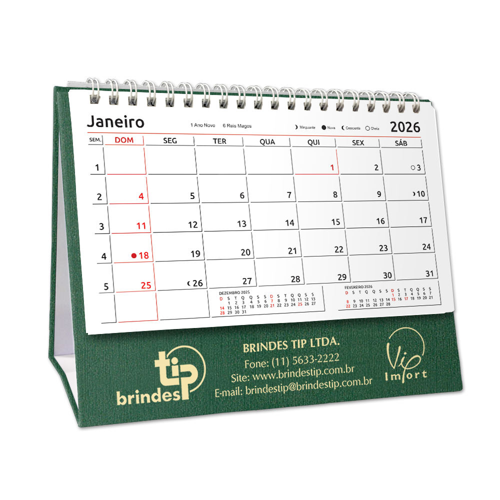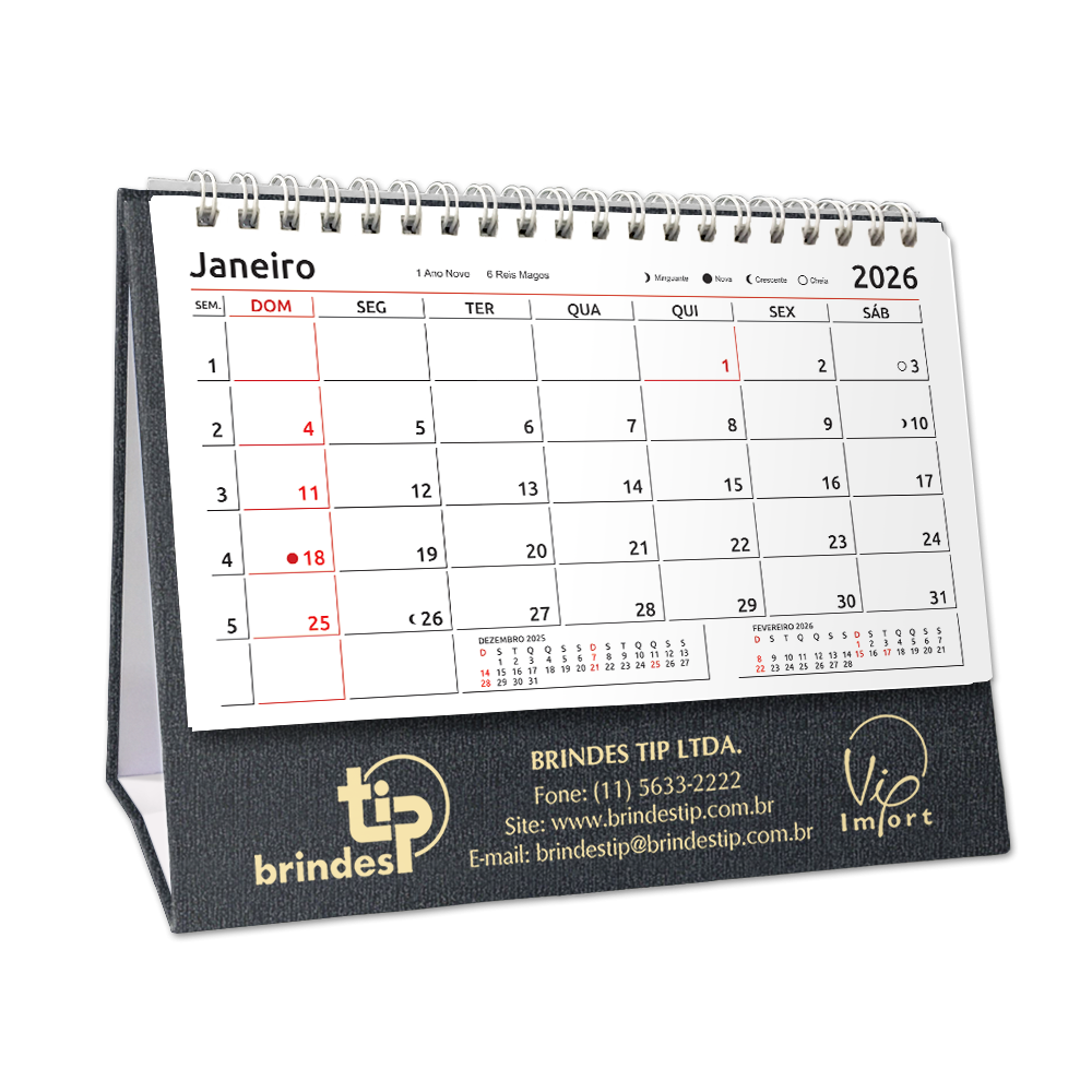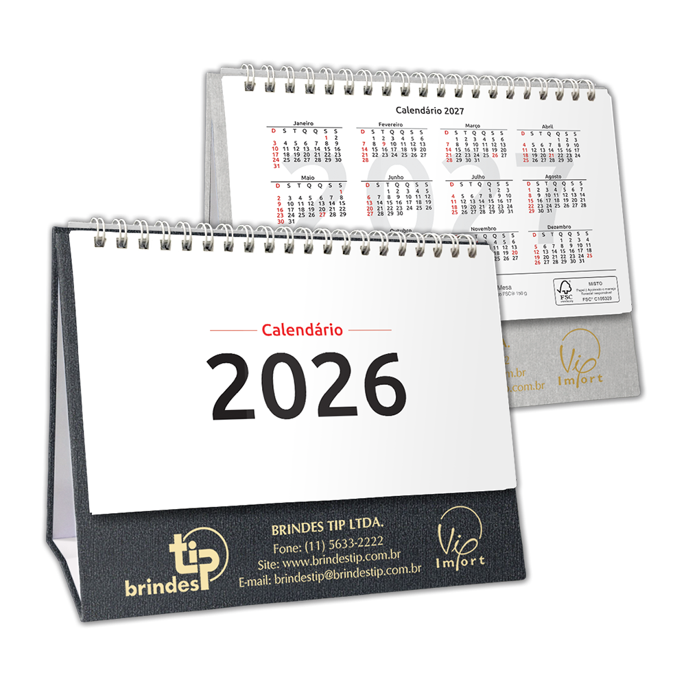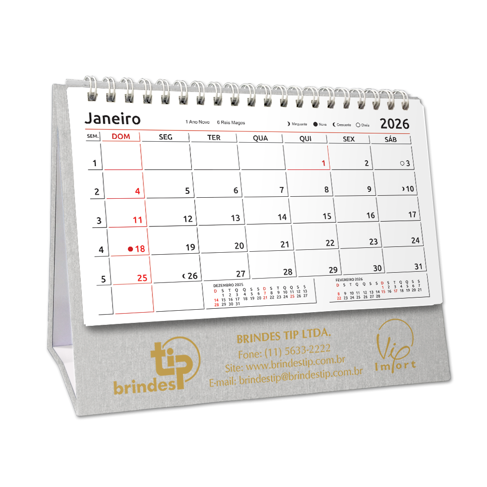 Folhinha Capa Dura c/ Garratip p/ Mesa, capa Platinotip