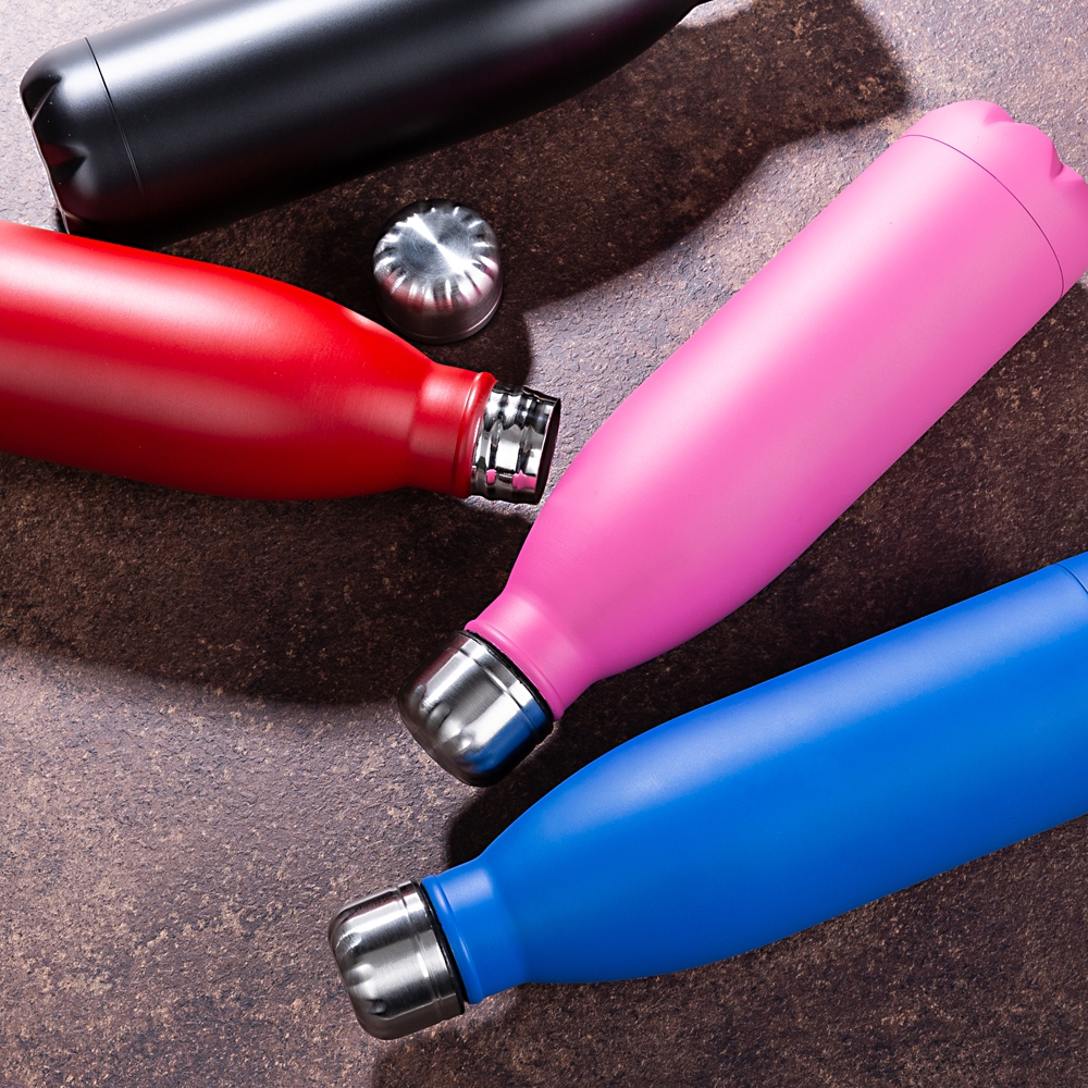 Garrafa 750ml em inox com pintura fosca. Possui tampa prata rosqueável. Observação: não colocar no fogão ou micro-ondas.