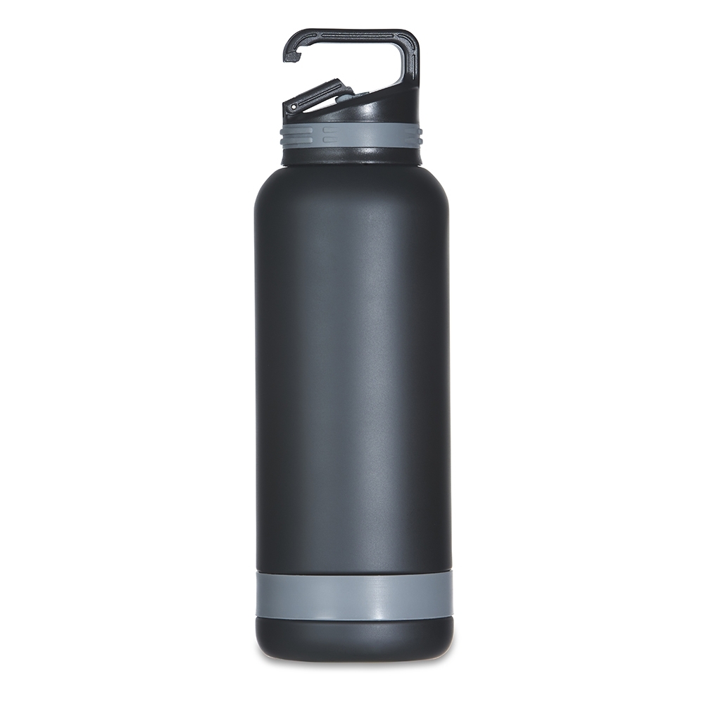 Garrafa térmica 700ml em inox, tampa rosqueável com suporte gancho. Tem pintura fosca e detalhe emborrachado na tampa e parte inferior.