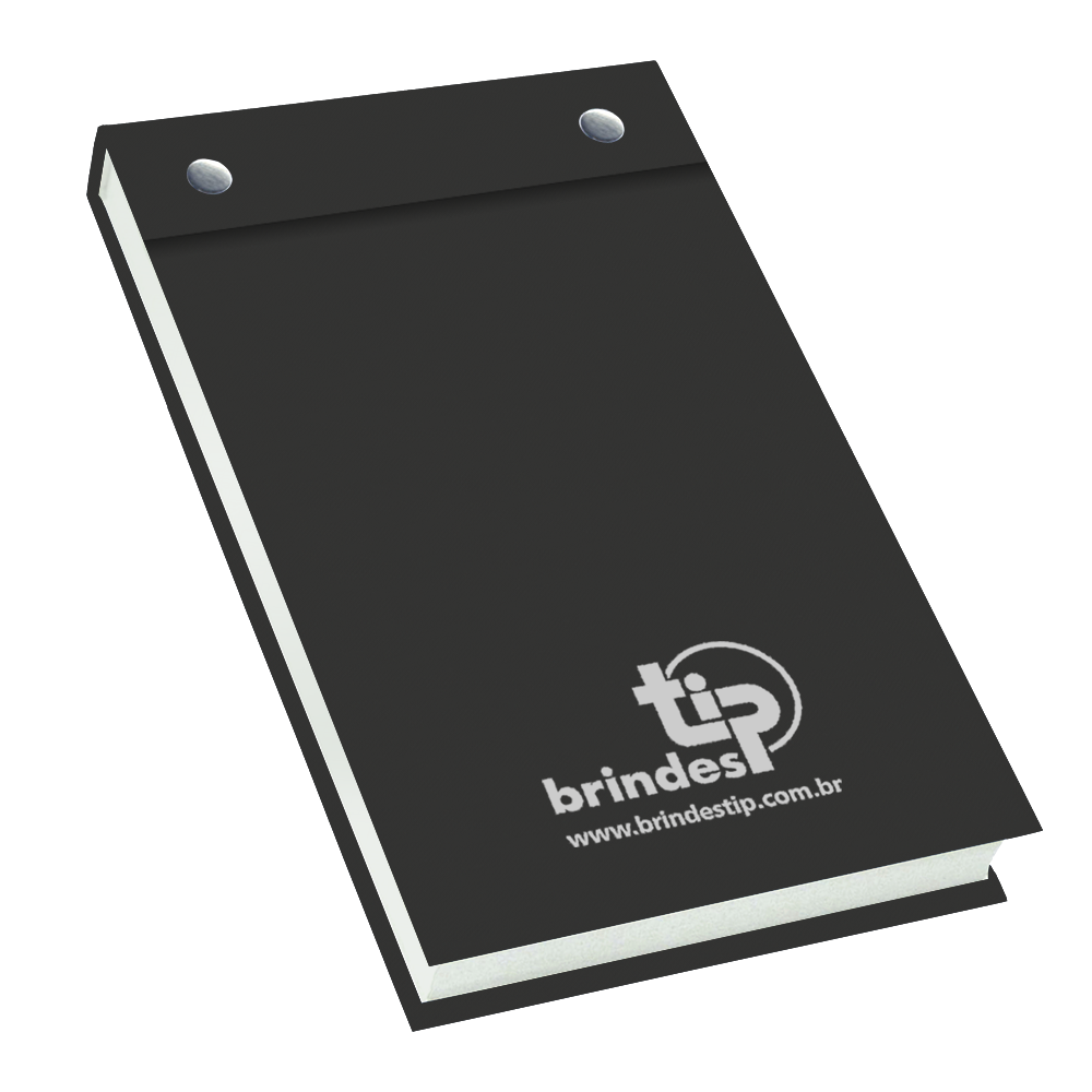 Porta Bloco SV - Sevilha. Material sintético, bloco de papel branco c/ 200 folhas e acabamento encadernado com rebites niquelados.