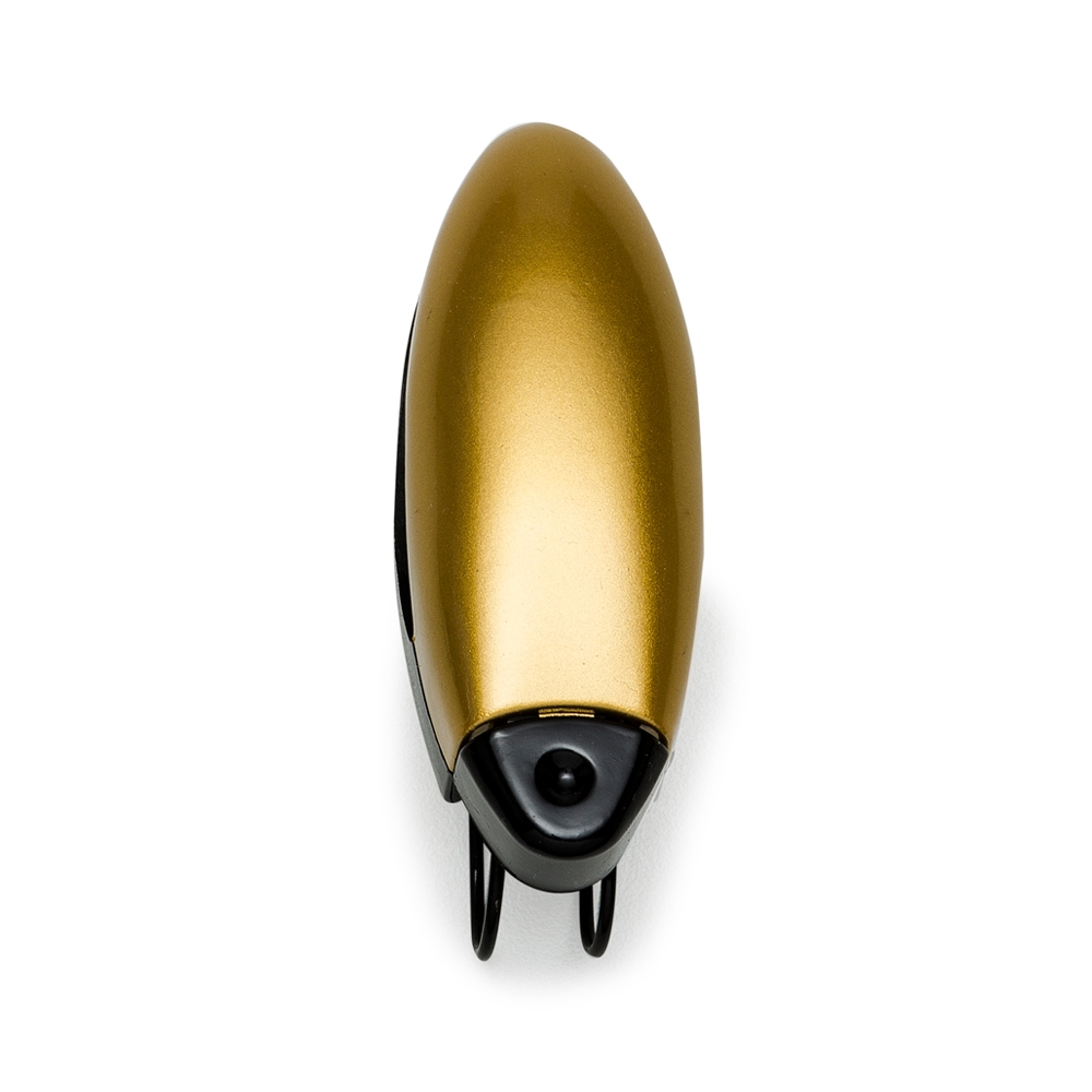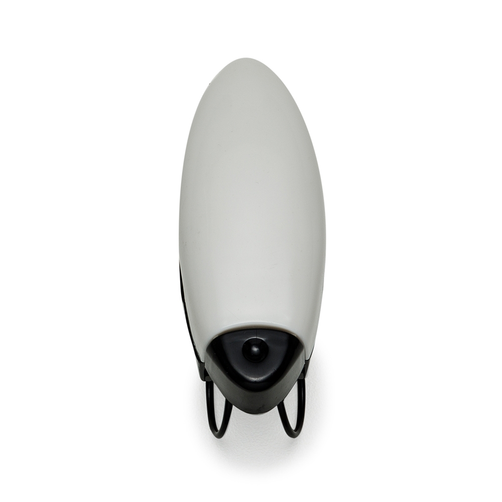Porta óculos colorido de plástico com detalhes preto. Haste de metal, pressionando “tampa” o compartimento superior se abrirá.