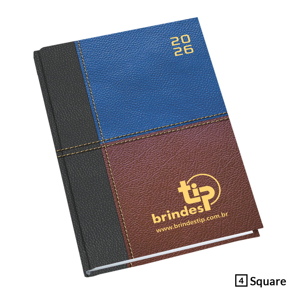 Agenda diária com planejamento no início de cada mês, tabelas úteis, índice telefônico, fitilho marcador de páginas e índice removível.