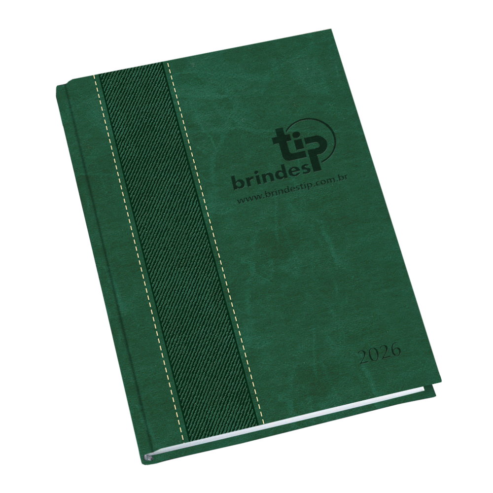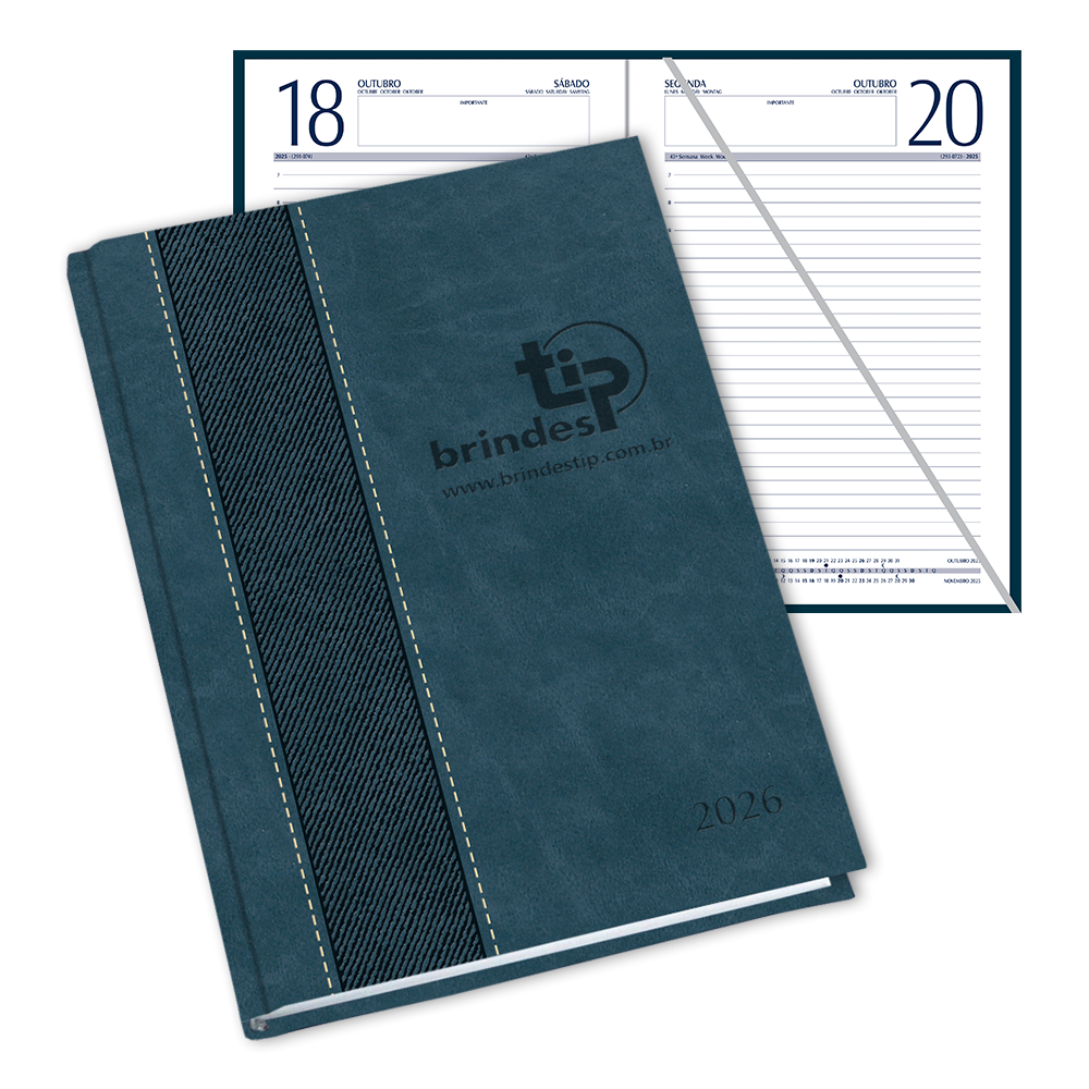 Agenda JL - Jacarta Linha. Material sintético com textura gravado a seco, costura grossa em linha, fitilho marcador de páginas e acabamento encadernado.