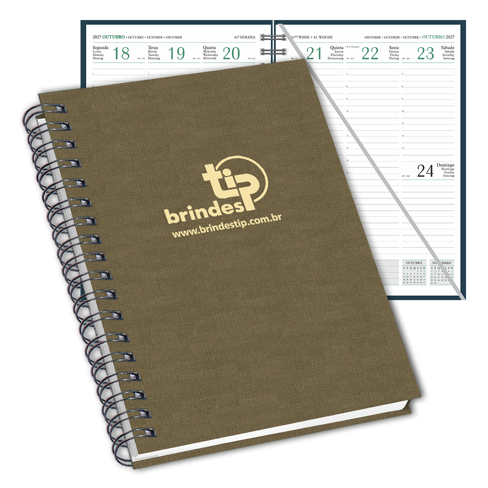Agenda TA - Taipé. Material sintético com leve textura de pelica, fitilho marcador de páginas e acabamento com garratip.