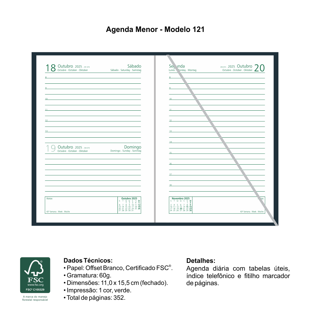 Agenda AD - Andorra. Material sintético, fitilho marcador de páginas e acabamento encadernado.