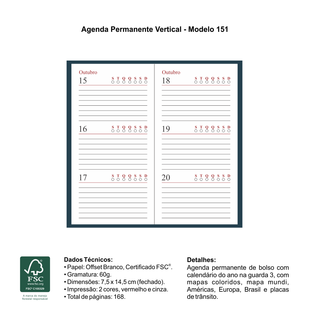 Agenda de bolso KY - Kyoto. Material sintético e acabamento encadernado.