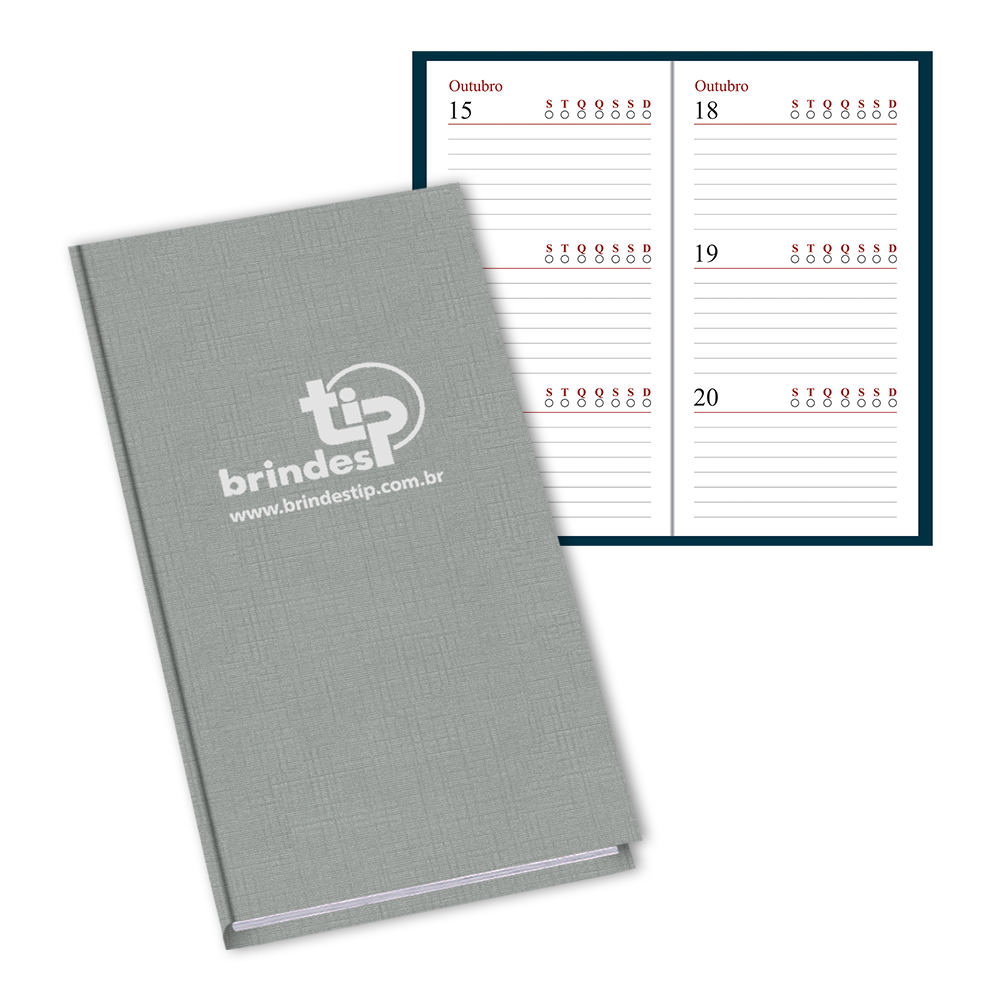 Agenda de bolso TA - Taipé. Material sintético com leve textura de pelica e acabamento encadernado.