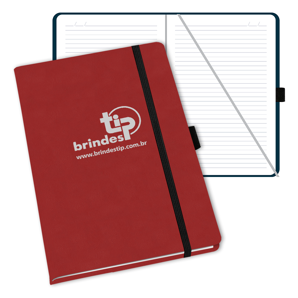 Bloco Tipskine SV - Sevilha. Material sintético, acabamento encadernado, suporte para caneta, folhas pautadas e fecho elástico preto.