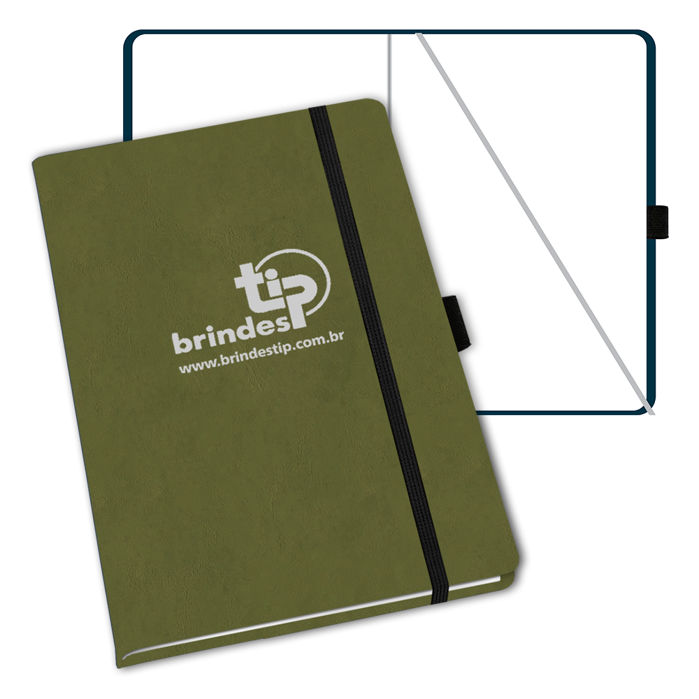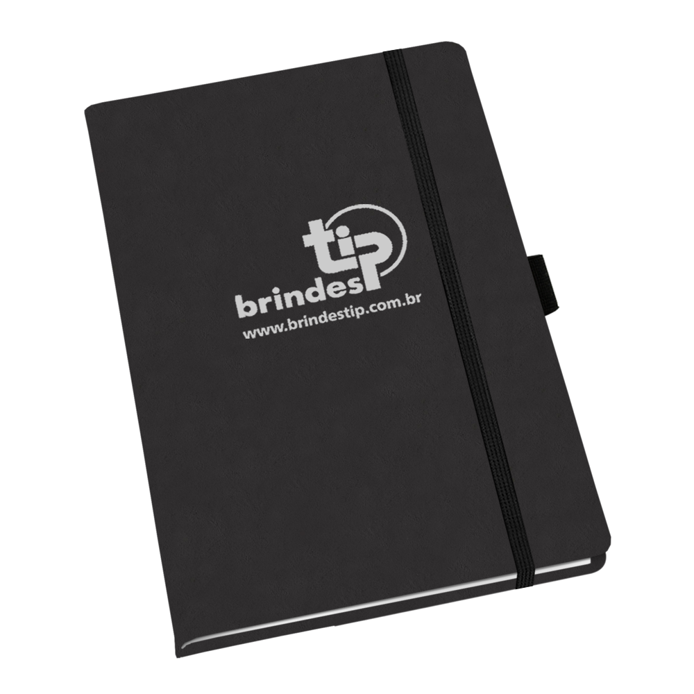 Bloco Tipskine LA - Lagos. Material sintético, acabamento encadernado, suporte para caneta e fecho elástico preto.