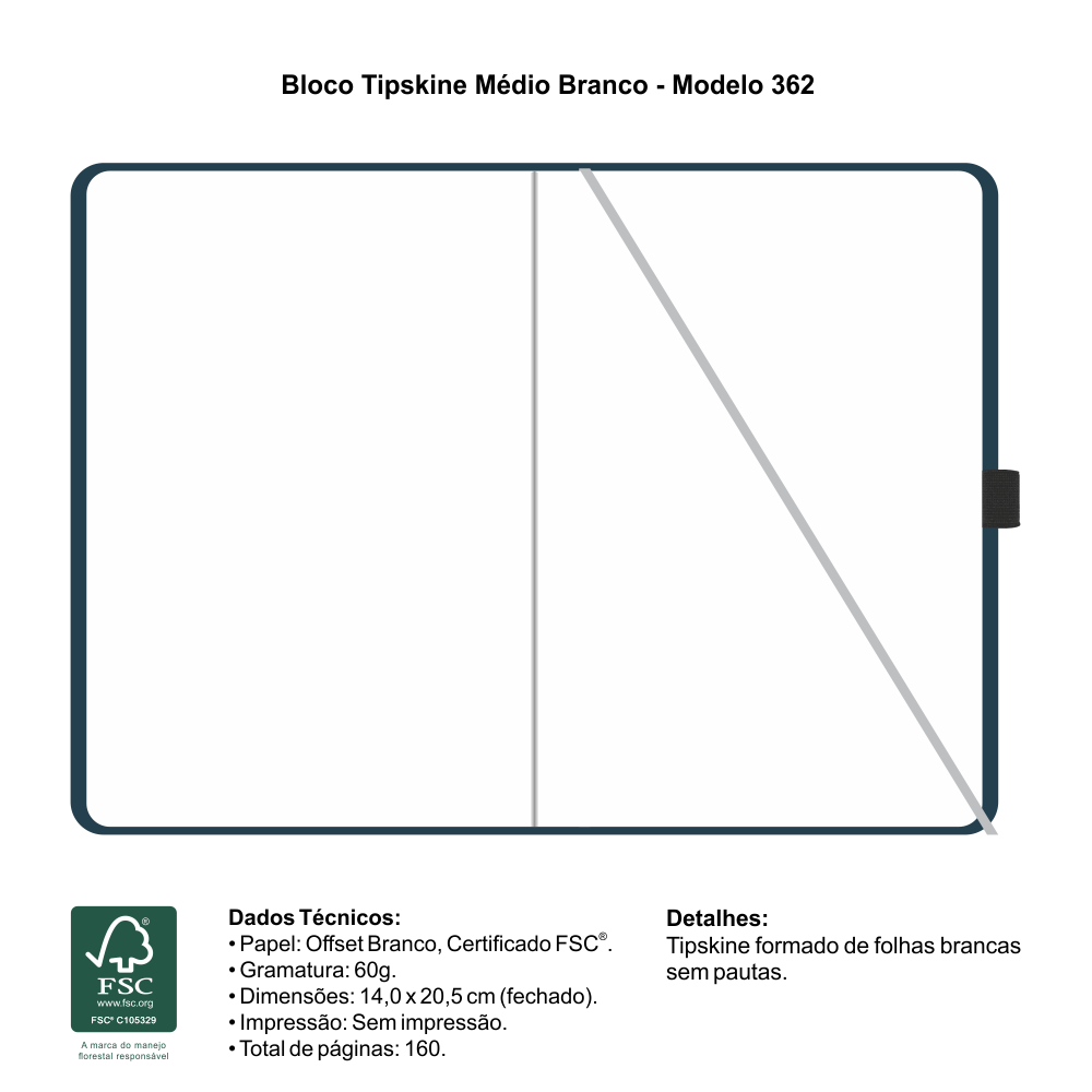 Bloco Tipskine Branco, capa Laminada Impressa