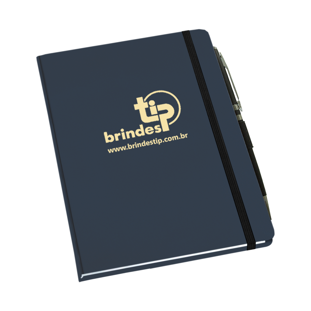 Caderno SV - Sevilha. Material sintético, fecho elástico, cantos redondos, suporte para caneta com caneta inclusa e acabamento encadernado.