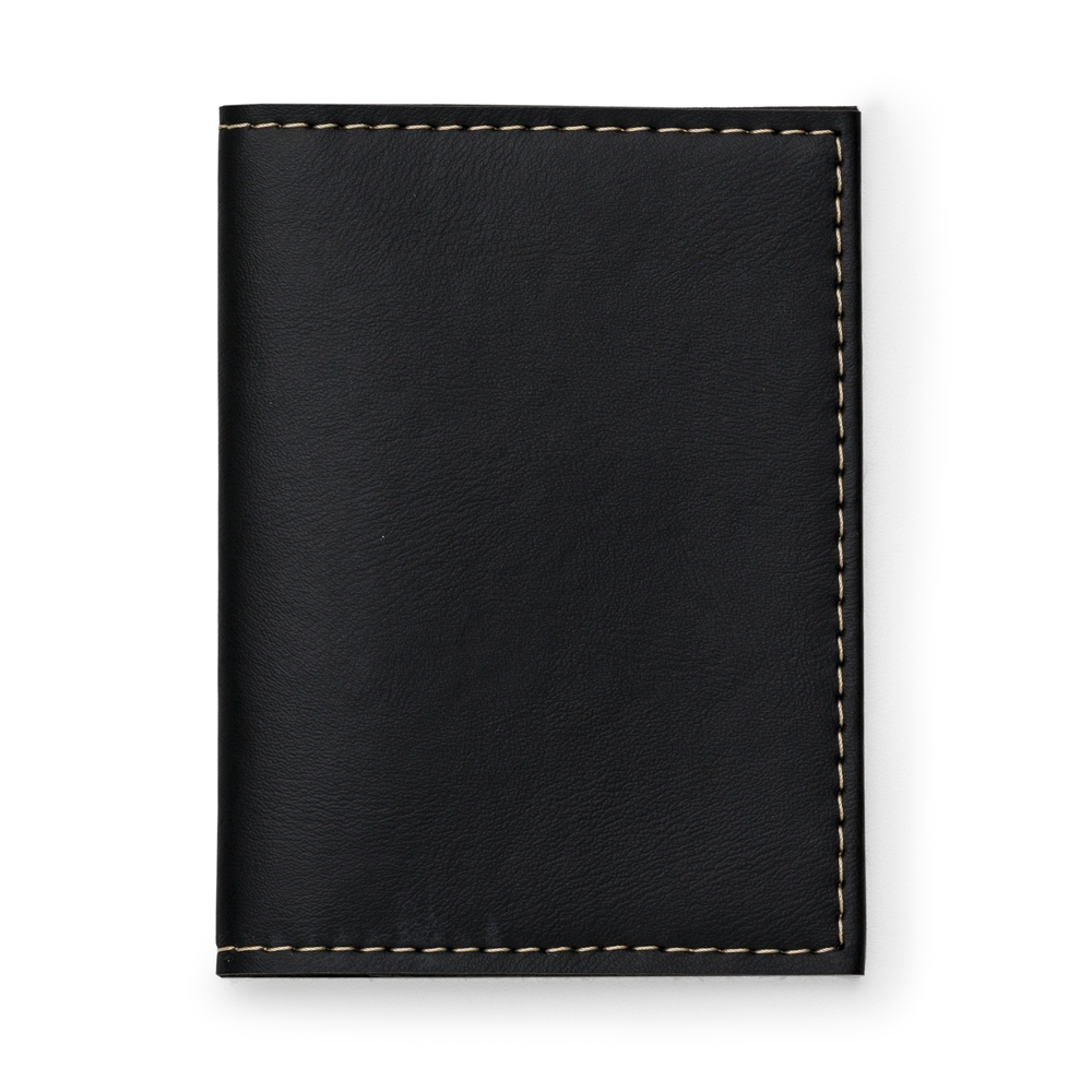Porta documento Bidins em couro sintético, capa frente e verso lisa, parte interna com bolso de visor plástico e três divisórias no próprio couro com bolso lateral.